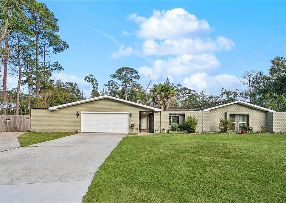 Fantastic 4bd/2bth with a bonus room in one of Mandeville's most desired neighborhoods! This New Golden Shores beauty sits on an oversized corner lot with ample off-street parking, rear yard access, and is oozing with convenience to shopping, restaurants, Causeway, & Lakefront. Fabulous, gated courtyard with koi pond and covered patio welcome you into the expansive living room with feature gas fireplace and wall of windows overlooking courtyard space. Updated galley kitchen features granite counters and stainless appliances including double oven and gas range. Breakfast bar seating opens to the formal dining room. Large walk-in pantry. Renovated primary suite offers french door access to rear yard, and has a luxurious ensuite with soaking tub, oversized walk-in glass shower, dual vanities, and custom built-out closet. Large guest bedrooms with guest bathroom. Split floor plan home with 4th bedroom on the other side of the home. Oversized garage with storage solutions houses laundry room. Spacious sunroom with wall of windows overlooking rear yard. Recently renovated mud room. Expansive, fully fenced yard with concrete patios. Great location just 3 mins to Causeway. Blue Ribbon Mandeville schools. Roof is approx. 8 yrs old. Flood zone X - no flood insurance required! A MUST SEE!! Make it yours today!