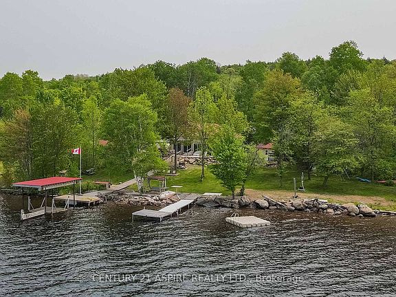Bark Lake Beauty! Year-Round Home or Perfect Lakeside Retreat. Welcome to your dream escape on stunning Bark Lake, just minutes from Barry's Bay. Whether you're looking for a peaceful year-round residence or the ultimate lakeside getaway, this property has it all. Enjoy spectacular sunset views from the comfort of your four-season sunporch or while relaxing on the spacious lakeside deck. With a gradual, mixed sandy/rocky entry, the waterfront is ideal for swimming, paddling, or any of your favorite lake sports. The main home features a beautifully designed open-concept kitchen with granite countertops, flowing seamlessly into the dining area and living room complete with a corner propane fireplace. There are two generous bedrooms on the main floor, a full bathroom, plus a second bathroom with laundry, and direct access from the dining and living room area to the sun-filled year-round porch, warmed by a charming woodstove. Upstairs, an open loft area provides extra living or sleeping space. Hosting is a breeze with three bunkies, perfect for overnight guests. Whether you're soaking in the views, swimming off the shore, or curled up by the fire, this Bark Lake property offers comfort, charm, and endless possibilities. Don't wait to make this your forever home or your four-season retreat. 24 Hour irrevocable on all offers