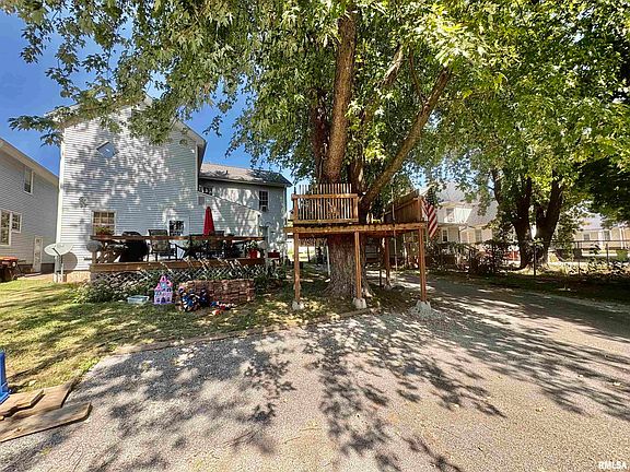 CHARMING 2 STORY ON EAST STATE STREET - THIS ONE HAS OUTSTANDING CURB APPEAL AND THE INSIDE IS EQUALLY AWESOME. LOVE THE COVERED FRONT PORCH AND SUBSTANTIAL BACK DECK AND EVERTHING IN-BETWEEN. ATTRACTIVE MAINTENACE FREE VINYL SIDING COMES ALIVE WITH FRESH WHITE SHUTTERS, COLUMNS AND RAILINGS ON THE PORCH. THE BACK DECK IS 16X16 VEIWS THE OVERSIZED 2 CAR GREAT GARAGE WHICH SETS BACK EVER SO NICELY IT LOOKS GREAT - THEN THERE IS THIS TREE HOUSE LIKE HOW CUTE IS IT. CHECK OUT THE PICTURES....ITS FLIPPING FUN .......BACK YARD HAS A BEHIND THE GARAGE FENCED AREA + AT THE FAR BACK A NEAT FIRE PIT! LETS GO IN THE HOUSE. SPIRAL STAIRCASE STEALS THE SHOW IN THE ENTRY BALL - LIVING ROOM FEATURES A BRICK FP WALL AND IS OPEN O THE KITCHEN WHICH IS THE HEART OF THE HOUSE- PRETTY OAK CABINETS OFF SET BY QUARTZ COUNTERS AND METAL TILE BACK SPASH LOOKING GREAT WITH THE UPDATED STAINLESS APPLIANCES. BACK DOOR OPENS TO THE DECK FOR GRILLING..WOW WOW WOW....MAIN FLOOR ALSO HAS A BEDROOM - FULL BATH AND OFFICE TYPE ROOM - OR A SMALL FAMILY TV ROOM UPSTAIRS YOU WILL FIND 3.4 BEDROOMS 3 WITH WINDOWS CLOSETS 1 WITHOUT - SO IS IT 3 OR 4 BUYER WILL DECIDE. LOTS OF UPDATED IN THE LAST 15 YEARS AND SOME MORE RECENT THAN THAT - PAINT AND FLOORING ON THE MAIN - THE REPLACEMENT WINDOWS REALLY MAKE A CRISP CURB SIDE LOOK. ITS A GREAT HOME PRICED TO SELL IT WILL FLY! SUMMARY 4-5 BEDS - 2 BATHS- PORCH DECK GREAT GARAGE DEEP BACK LOT AND THAT TREE HOUSE