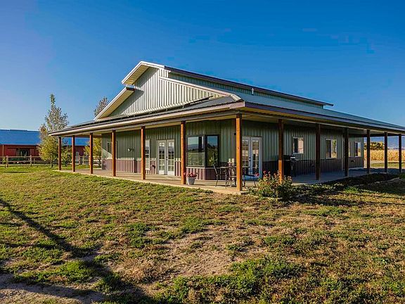 Experience relaxed country living with modern efficiency at this beautifully designed barndominium on nearly 10 acres in Delta’s desirable Ash Mesa area. Built in 2020, this thoughtfully crafted home blends open-concept living with accessibility and sustainability. The gourmet kitchen features granite counters, hardwood cabinetry, and stainless appliances, opening to spacious living areas with luxury vinyl flooring and wide views of surrounding peaks. The primary suite offers a spa-like bath with double sinks, jetted tub, and walk-in shower. Enjoy year-round comfort with an owned 4 kW solar array and on-demand hot water. Outdoors, a wraparound porch overlooks irrigated pasture served by UVWUA, plus a large barn, garden plot, and fencing ready for animals. An oversized three-car garage and two carports provide generous parking. Quiet rural setting just 10 miles from town...where tranquility meets modern convenience.