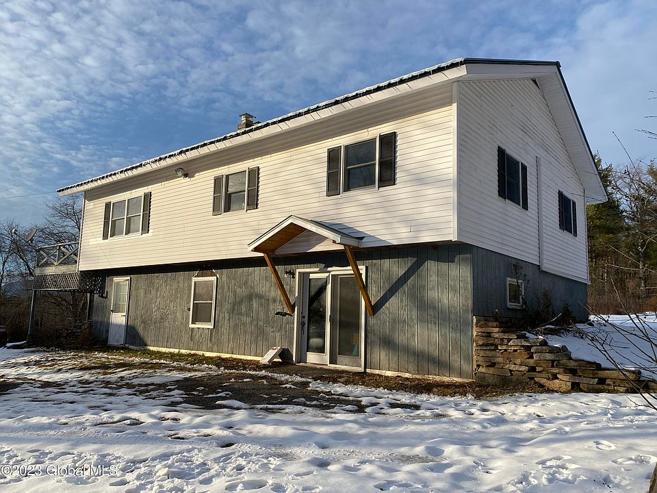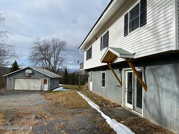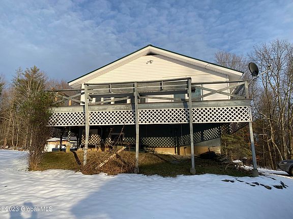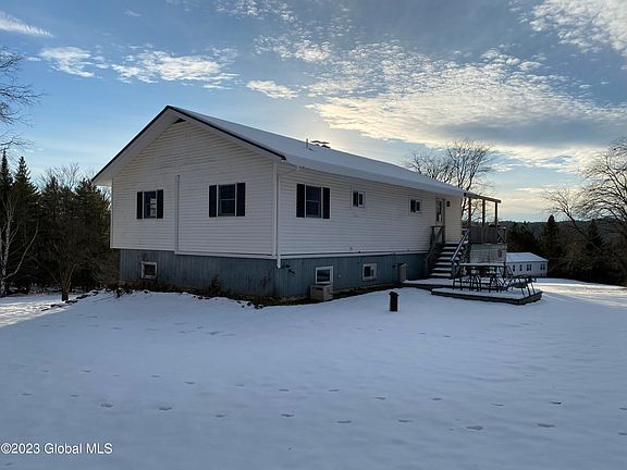This 3 bed, 2 bath home sits on just over 2 acres, off a quiet country road. The 24'x28'- 2 car garage has a work bench and plenty of room for toys. The large open kitchen features a huge island with plenty of counter workspace and lots of cabinets for storage. Kitchen is open to the LR & also features very high ceilings. Kitchen has ceramic tile and living room has new modern laminate flooring. Deck on 2nd level has beautiful Mtn views. Lower level (just under 1000sf) has ceramic tile and a cozy wood burning stove for those snowy winter days. This home also has a very large outbuilding for storage. Must see this Adirondack Mtn retreat.