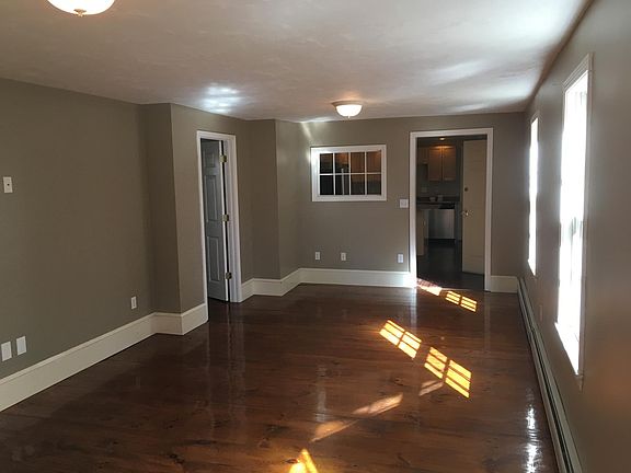 First floor of 2 family home. Recently renovated, shiny wood floors, unusual windows, high ceilings, fireplace, 3 bdrms, 2 full baths, laundry room, eat in kitchen, covered patio, room for 2 cars to park off street Tenant pays for electric and gas heat. Landlord pays snow removal and landscaping