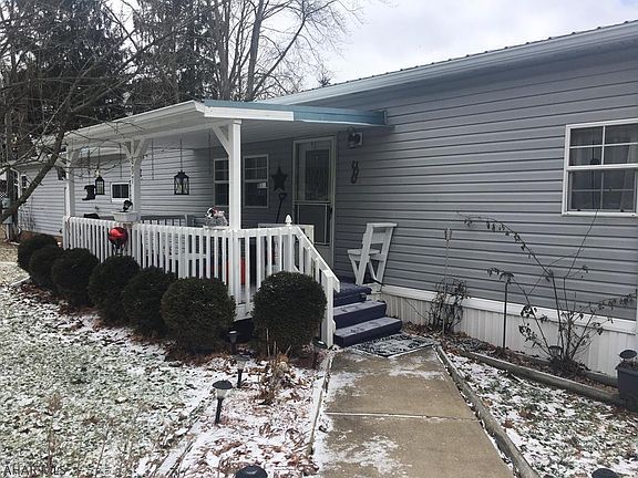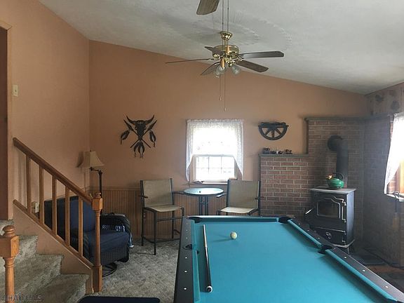 A VERY warm home, offering a gas fireplace in the living room and a wood/coal stove in the step down family with pool table that overlooks a large flat backyard with double shed. The two back decks offer privacy for anyone or a covered front porch perked for deer spotting. The master bedroom includes a Garden Tub for soaking after that long day. This is a two bedroom home with eat-in-kitchen move in ready.