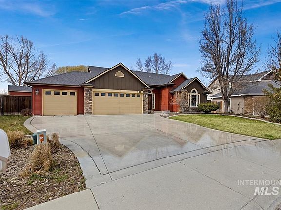 This thoughtfully designed custom built home features an open concept with split bedrooms. The private master features lavish ensuite with dual sinks, soaker tub, walk in closet and direct access to the back patio. No backyard neighbors. Large 12x10 detached storage shed. 3 car garage with a convenient pull thru-bay. Interior boasts vaulted ceilings creating an inviting living space, while the dual sided gas fireplace offers a cozy welcome into the kitchen and dining areas. Rich Brazilian cherry wood floors and maple kitchen cabinetry, granite counter tops and tile backsplash are showcased in this spacious kitchen. The upper-level bonus room with half bath could be used as a guest suite, office or flex room. Backyard is fully fenced, gas line for BBQ, garden boxes, updated landscaping, large patio and pergola. Access the backyard gate to the common area for even more space to enjoy. Walk to nearby Blake Park which features a playground. Star Elementary is a short walk away.