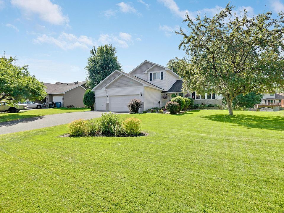 Welcome home to this clean and well cared for 5+ bed, 4 bath walkout modified 2 story close to the Mississippi river. This home features updated kitchen with granite tops, large breakfast bar, gorgeous hardwood floors, vaulted ceilings, main floor family room w/ built in entertainment center and gas fireplace, main floor bed and laundry, large primary suite w/ huge walk in closet and private ceramic bath, updated upper level full bath, 2 additional upper level large bedrooms, finished lower level w/ family room w/ gas frpl, additional 5th bedroom, office, and bath. Other features include, newer windows, newer mechanicals, large deck, awesome patio, gorgeous lot w/ mature trees, 3 car garage, A Must See!