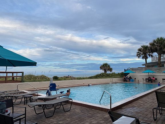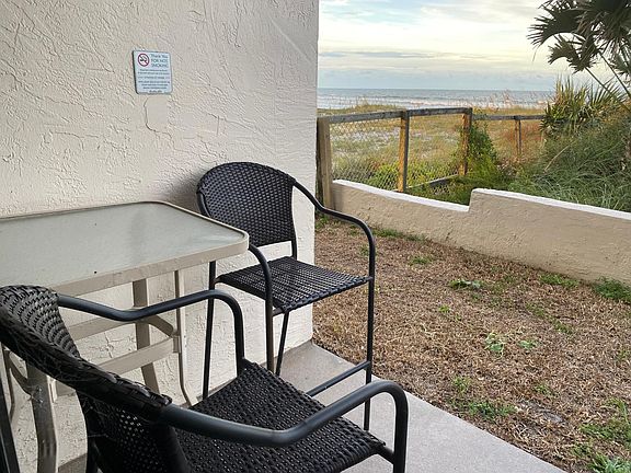 Economical oceanfront condo ($600 per week or $1600 per month) that welcomes you to vacation with your pet and enjoy the scenes of the ocean from your back porch. Tile floors, freshly painted, and bathroom with large updated shower enclosure. The condomium has a climate-controlled pool on the ocean side and a community grilling area for picnicking. A private boardwalk provides easy access to the spectacular Crescent beach that consists of sugar white sands near the dunes and an expansive hard-packed sand during low tide that is perfect for walking, jogging, bike riding, sun bathing or swimming. The remote beach balanced with the exciting nightlife that downtown St. Augustine has to offer is definitely the draw. The condo is fully furnished and has all the essentials including small kitchenette with 2 burners, toaster oven, microwave and full size refrigerator. It's an economical stay for a memorable and relaxing vacation. Cable TV is included but you will have to provide your own hotspot for internet.