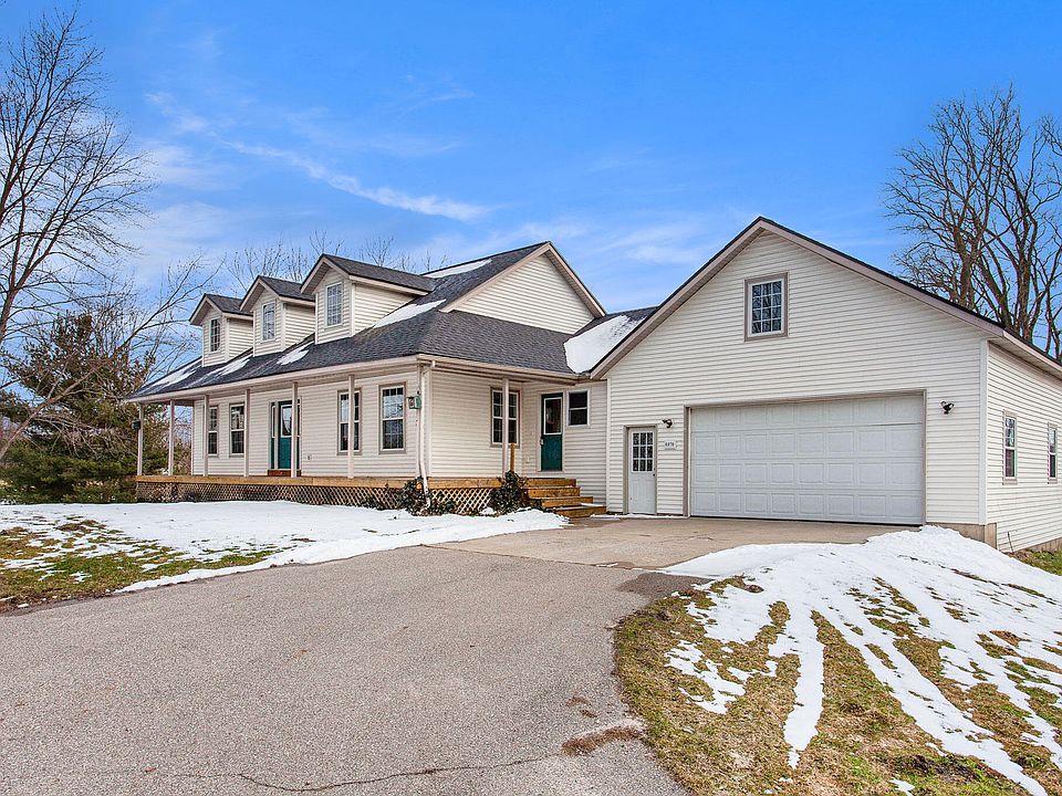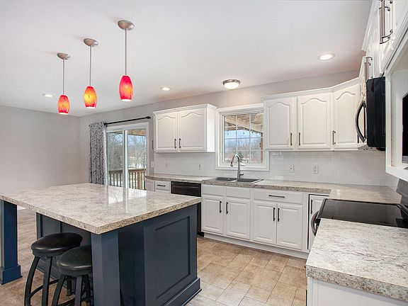 Country living at it's finest on approximately 5 acres. Main floor has wonderful kitchen with large center island, living room, primary bedroom, 2nd bedroom, fully remodeled bathroom with in-floor heat, main floor laundry, 1/2 bath and back entry with plenty of cabinets for storage. The walkout lower level has 2 additional bedroom, full bath, bonus room or office, family room with fireplace and kitchenette. Additional amenities are; the home sits back off the road, 26x40 pole barn with propane to it, deck, and paved driveway. Lower level square feet is approximate. A great place to call home.