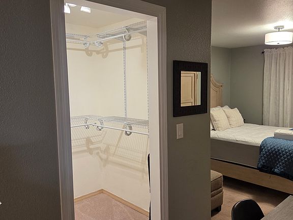 Stylish lightingClassic wood bedClean tiled bathroomPlenty of storageDining areaGranite countertopsAdditional storage