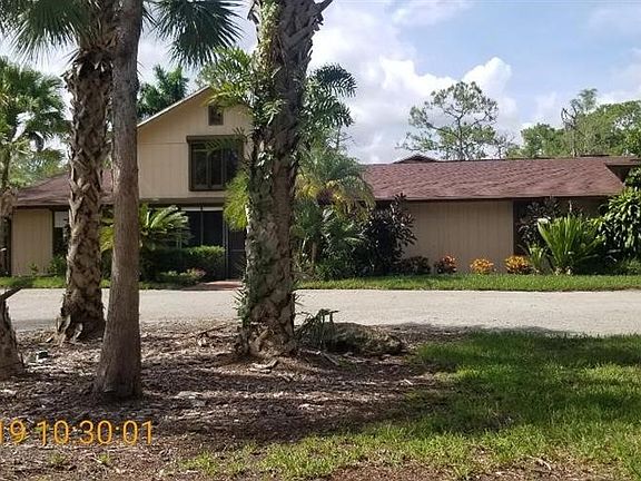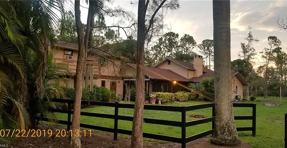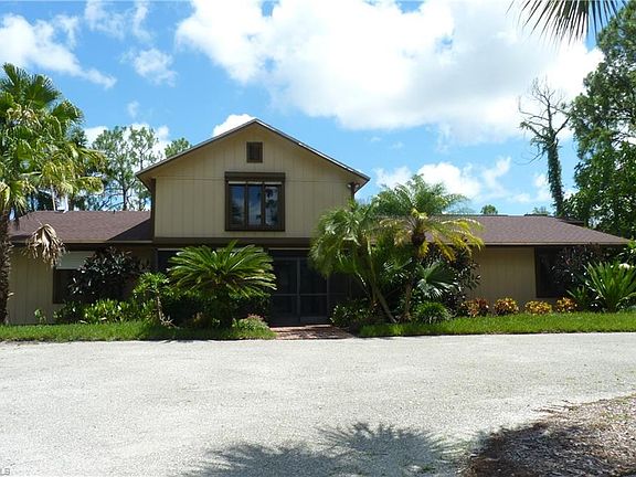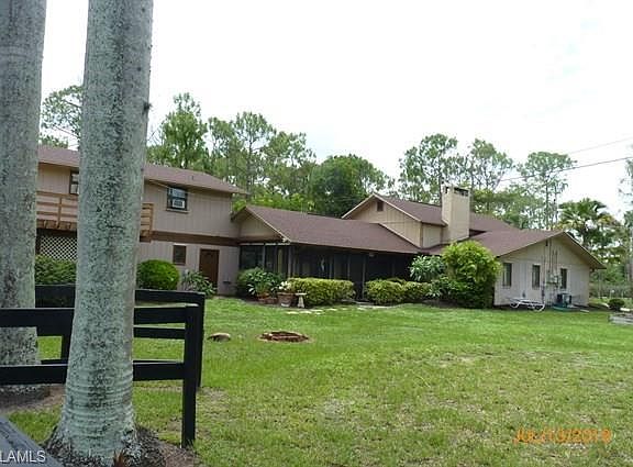 Livingston Woods 2.5 acre property with many unique features ! This spacious home includes a fireplace, walk-up loft in the living room, beautiful 20x30 screen porch,a lovely patio next to it, kitchen in 2018, 'huge' master bedroom with an updated private bathroom w/a soaking tub and separate shower. There are 2 full bathrooms in the main home, plus a half bath off the 2 car garage. Guest apartment over the garage includes a great room, kitchen area, full bathroom, laundry, large guest BR, large wood deck. The driveway leads in the rear to a unique 4 stall, center aisle horse stable w/a tack room, feed room& overhead door, corral. SOLD AS-IS. New roof in 2018, in sunny NaplesFL. A beautiful lot & unique property on 2.5 acres in Livingston Woods at this price !!