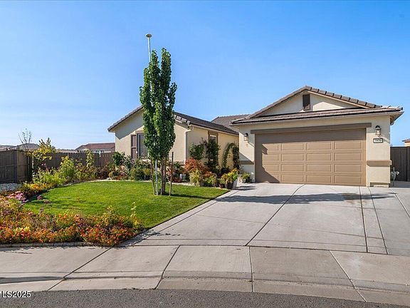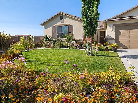 A stunning home with four bedrooms, three bathrooms, and one story, built in the year 2020 in the Pioneer Meadows Community of Sparks, Nevada. HOA that is affordable with.A 26-acre backyard that is brimming with flowers and fruit trees, as well as an exceptionally large covered patio. RV space is available on the side gate for future use. Granite countertops, designer backsplash, under-cabinet lighting in the kitchen, and wood-framed windows in both the kitchen and the living room are some of the upgrades that have been installed. Along with chandeliers, ceiling fans, and accent wood and new paint on the kitchen island, the dining room features board and batten flooring construction. LVP flooring and floating shelves for the master bedroom. the driveway and the side yard have been extended with concrete, and there is also a concrete slab under the shed in the backyard. A drip system in the backyard takes care of the landscaping in both the front and the backyard. We have a brand new back yard gate in addition to the patio pavers and awning that are covered in the backyard. New front screen door and gutters are installed. All of the window coverings and hardware in the kitchen have been recently replaced. The garage has been painted, and it features storage space above the garage. There is a refrigerator in both the kitchen and the garage, as well as a washer, dryer, and a shed in this house. This smart home features a keyless entry system for the front door as well as a Ring system, both of which the owner has never utilized.