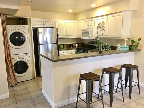 Available now! 2 bed/2 bath, single story condo, with Central AC, in beautiful La Costa. New paint, dish washer, window blinds, and washer/dryer. Enjoy the beautiful community pool and workout room. Condo includes 2 outside parking spaces, and large storage locker big enough for bikes, etc. Water and trash included. No stairs required to access. Private end unit with tile floors and large balcony. Will consider 1 small pet. 14 month lease preferred. La Costa Meadows Elementary/San Elijo Middle/San Marcos High. Rent includes water and trash. 14 month lease preferred.