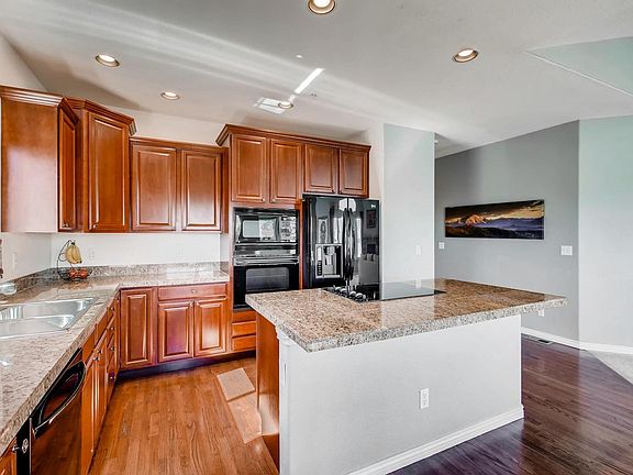 Fabulous ranch duplex located in gated Roxborough Park close to the mountains with city views off the deck. Chef's kitchen with cherry cabinets, gas stove cooktop, built-in oven, micro and refrigerator. Nook opens to the deck with amazing views. Open great room with fireplace. Master with cathedral ceiling features private 5 piece bath with tile tops and walk in closet. Bedroom on the first floor with full bath. Nice finished rec room in the walk out basement, plus another bedroom, full bath, and utility room with sink. New carpet in most every room. Smart wired lighting throughout. Private location with wildlife and views. Quick possession and closing. Arrowhead golf course nearby. Outdoor enthusiasts dream - Quick access to Roxborough State Park, Chatfield reservoir, Waterton Canyon, Platte River and miles of trails within the community. Priced for a quick sale and closing.