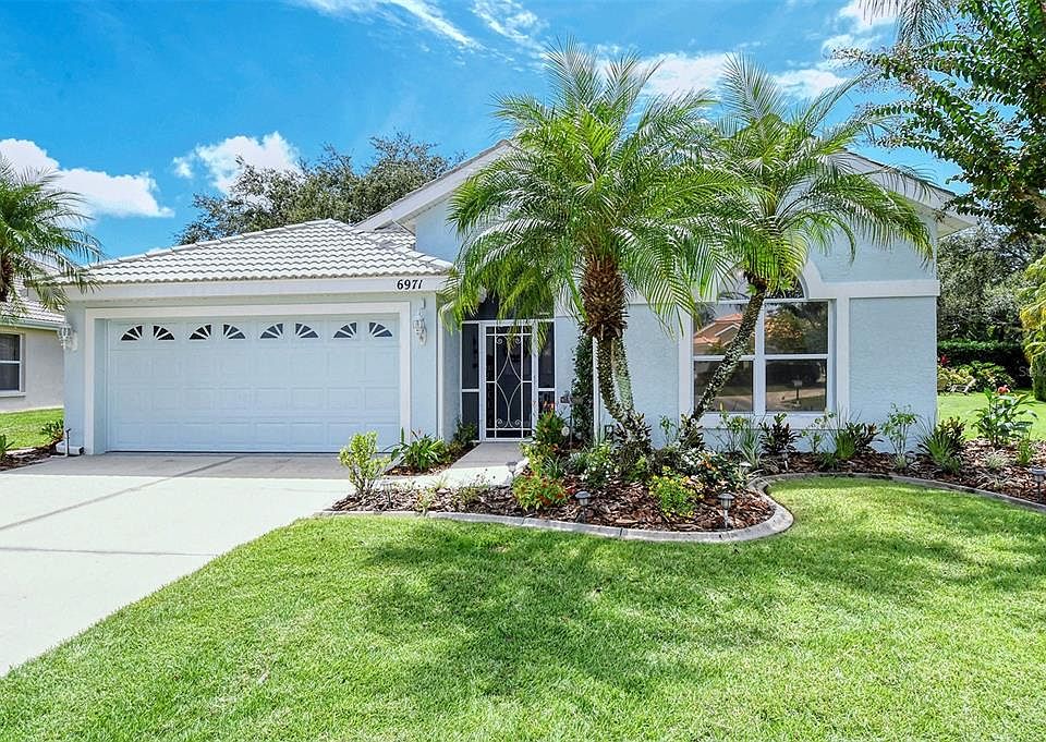 BACKUP OFFERS ACCEPTED. Welcome to Mote Ranch, a friendly, peaceful, and sought-after community. As you enter the doors of this lovely, move-in-ready residence, with a warm and welcoming open floor-plan, you will know you are HOME. The light, bright, living room dining area, with high ceilings and electric fireplace, create an excellent space for gathering. Sliding doors open to extend the living space to a fabulous pool and patio boasting multiple lounging areas, a solar heated pool, solar lighting, spa, and tropical views. The lush yard is your own secluded oasis featuring an outdoor fire pit with private pond views. You will love entertaining in the gorgeous kitchen, completely remodeled to the highest standards with beautiful cabinets, thoughtful lighting, quartz counters, and stainless appliances. The kitchen is central to the indoor and outdoor living space, creating a cozy and bright continuous design for enjoying all areas of your home. The spacious owner's suite opens to the serenity of the outdoor patio and boasts an updated bathroom with a walk-in shower, soaking tub, and dual vanities. The three additional split plan bedrooms and bath feature office/den options and comfortable guest bedrooms with abundant natural light. As you step outside into the patio space, you'll be greeted by thoughtful landscape design, a private pool and spa, an area for grilling, and multiple seating areas. Look beyond the screened outdoor space and you'll find a fire pit, perfect for enjoying moonlit nights and breezy days. The combination of indoor and outdoor areas of the home makes for easy enjoyment of all the seasons, from sunny days to cooler months. Mote Ranch community is centrally located with a low HOA and many recreational activities to choose from; enjoy walking trails, swimming in a heated Olympic-size pool, kayaking and fishing on the Braden River, conservation areas, and a playground. Palm Aire Country Club membership offers nearby access to tennis, golf, and fitness activities, while Mote Ranch is a prime location just minutes away from shopping, dining, and entertainment venues. You will love the easy access to University Town Center, Benderson Park, Mainstreet Lakewood Ranch, Downtown Sarasota, SRQ airport, Medical Facilities, and the world-famous Gulf of Mexico beaches. Live the Florida Lifestyle in a lovely home nestled in a tranquil and beautifully landscaped community.