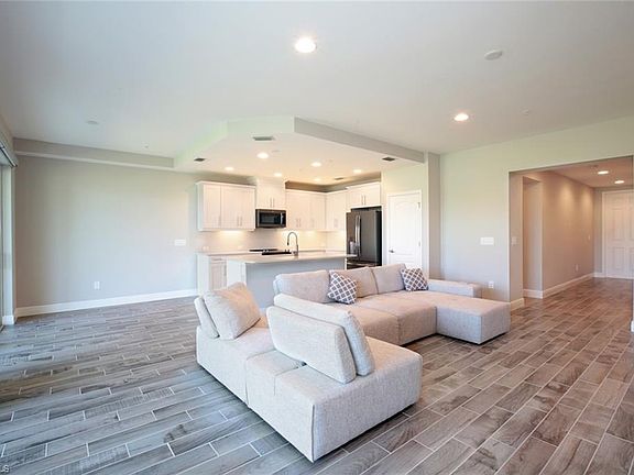 With over 38K in upgrades, this 1st floor carriage home located in Avalon built in 2018 is a must to view. Nestled in just over 23 acres, this 2 bed 2 bathroom the property boasts a large screened in lanai and is one of the few units that affords a long lake view all within steps to the community pool and clubhouse. This unit includes upgraded ceramic plank tiles in all living areas and bedrooms, upgraded white New Haven kitchen cabinetry, upgraded hardware, quartz countertops throughout, upgraded appliances in slate, designer master shower and Kohler fixtures. With a central location located on the corner of David Boulevard and County Barn Road, this gated coastal inspired community encompasses all with Naples Downtown and beaches just a short drive away, shopping plazas close by and ease of access to I-75.