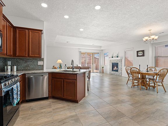 ***$15,000 price reduction*** Dont miss this open floor plan home featuring custom features throughout; bringing the new owner better than new. The large tiled, open great room provides the perfect hub to the adjacent kitchen and large dining room. Kitchen is surrounded by a large bar top counter with gorgeous granite to complement like new stainless steel appliances and stunning backsplash. Custom features throughout including 9' ceilings with recessed LED lighting. Primary bath features custom tub and dual wall and rain head shower. Large closets with built-in shelving in all rooms. 8' tall oversized garage door and 23' length fully finished garage. Fully landscaped. Energy efficient, GreenNM Silver rated home. Nearby parks, schools, shopping, dining.