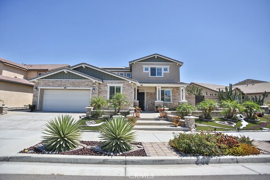 Welcome to this beautiful highly upgraded 5 bedrooms, 3 baths, 4 car garages nestled in RIVERBEND COMMUNITY with low HOA. Owners have spent over $300k in upgrades interior, exterior, and landscapes over the years with detail perfection in this home. As you walk in, the first floor offers private dining room, huge family room with cozy fireplace, open kitchen with granite island and large pantry, downstairs bedroom with full bath, an office, and beautiful customed granite floors throughout. As you are ascending up granite staircase, Upstairs offer premium wood floor throughout with a huge master suite with walk in closet, a loft perfect for entertainment, 3 additional bedrooms, and crowed moldings and customed shutters throughout the whole house. Outside offers beyond imageable beautiful front and back landscape with covered patio. The Community also offer walking trails/ horse trails, golf course, parks, various playgrounds, and award winning Corona-Norco school district. The home is also recently equipped with a large PAID OFF owned tesla solar system. This home is centrally located with easy access to Freeway 15, 60, 91, and 10. THIS IS MUST SEE TO APPRECIATE ALL THE DETAIL WORKS BEING DONE!
