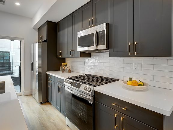 This new END UNIT townhome minutes from Sloans Lake and Downtown Denver features 3 bedrooms and 3 full bathrooms, a spacious fenced in private yard for your furry friends, Large 1 car attached garage with room for storage, 1 car private parking spot adjacent to the unit that can fit a Pick up truck, multiple balconies, and no carpet in sight! Enter through your private yard or attached garage to the lower level with a foyer, bedroom, and full bath. Head upstairs to the main level where you will find a chefs kitchen featuring a gas range, massive eat in quartz island that will comfortably seat four, and a walk in pantry with incredible storage for all your snacks and kitchen accessories. There is easy access to your balcony off the kitchen with a convenient gas hookup for all your grilling needs. Customize the main level to suit your vision with plenty of room for different dining and entertaining arrangements. Upstairs you will find two bedrooms and two full bathrooms. The spacious primary suite has its own balcony, sizable walk in closet, and beautiful primary bath with an oversized shower, toilet closet, and double vanity. Schedule a showing today! We have black and white finishes available. Photos may be of similar unit in same complex.