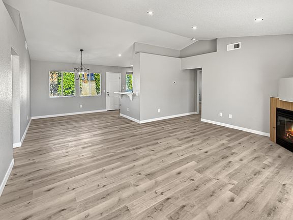 Welcome to this freshly remodeled 3-bedroom, 2-bath home in Cathedral City offering modern style, comfort, and value. Inside, you'll find an open floor plan with brand-new luxury vinyl flooring, recessed lighting, and a bright kitchen featuring white cabinetry, quartz countertops, and stainless-steel appliances. The spacious living area includes a cozy fireplace and large windows for plenty of natural light.