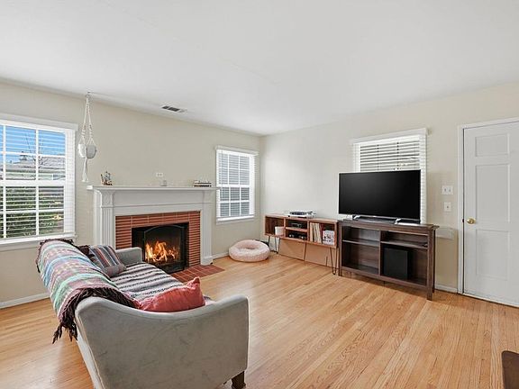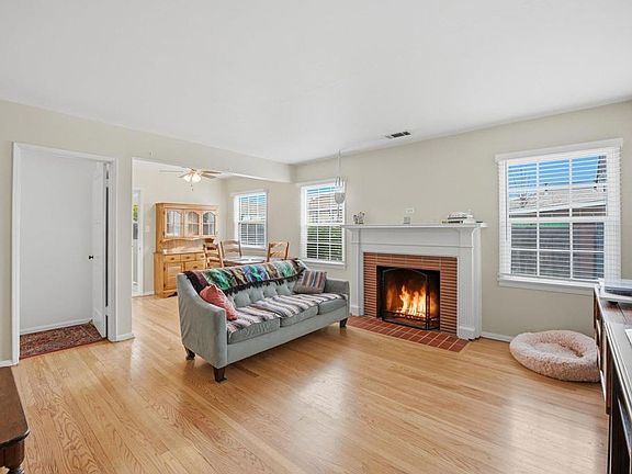 Handsome brick-lined fireplaceCharming single-story homeAbundant natural lightHuge backyardBright welcoming atmosphereDetached two-car garageComposition roof