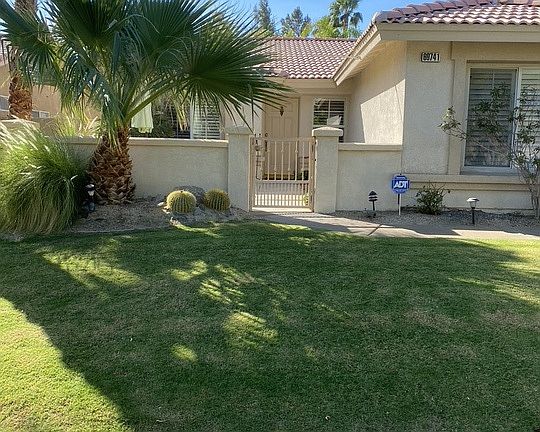 Incredible floor plan for this Century Park three bedroom, two bathroom single family home. Features walled and gated front courtyard entry, living, dining, family room and master bedroom all with vaulted ceilings. Fireplace in the family room. Plantation shutters, Murphy bed, living areas tiled and bedrooms carpeted. Pebble tech salt water pool with above ground spa, two Alumawood covered patios one with built-in bbq/bar very private!!! Swamp cooler, central a/c, inside laundry and attached two car garage with additional storage cabinets. Buyer and Agent are advised to independently investigate all aspects of the property and verify the accuracy of all information provided.