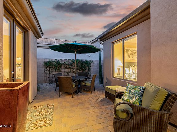 OWNED SOLAR! Welcome to the Terravita Golf and Country Club. This meticulously cared for Valis model, complete with a Casita, is a true gem. From the moment you step inside, you'll appreciate the care and attention to detail that has gone into this home. The Valis floor plan features 2 spacious bedrooms, 2 baths, plus a versatile sitting room/office that overlooks the serene backyard and desert arroyo. The separate Casita includes its own bedroom, walk-in shower, and walk-in closet—ideal for guests or a private retreat. Step outside to the inviting courtyard, beautifully designed with pavers and ample space for outdoor living. Inside, you'll be welcomed by an open, light-filled floor plan with soaring ceilings. The spacious living room includes a cozy fireplace. The kitchen is equipped with sleek granite counters, stainless steel appliances, and an R.O. system, while the adjoining dining area features a built-in buffet. The master suite offers a peaceful retreat, with a large picture window that frames the tranquil backyard view. The master bath boasts granite counters, a jetted tub, a walk-in shower, and a generous walk-in closet. The backyard is a true oasis, with expertly crafted Glen Schwartz landscaping and a soothing water fountain, and artwork by Mark Carroll titled "Twigs" on the side block wall. Low-maintenance desert plants and a paved path lead to a cozy seating area, ideal for enjoying Arizona winters by the firepit, while a view fence opens up to breathtaking desert arroyo vistas. The 2-car garage comes with a whole home soft-water system and ample storage cabinets. Experience the best of Arizona living at the prestigious Terravita Golf & Country Club, where you'll enjoy unmatched amenities, including an 18-hole championship golf course. This home offers the perfect combination of comfort, style, and outdoor living.