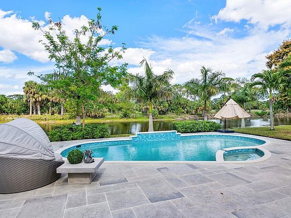 Delight in $500,000 of meticulously chosen upgrades that enhance both the interior and exterior of this remarkable 2-acre oasis pool home, including ALL NEW impact windows and doors. Experience luxury living with 4 spacious bedrooms, each complemented by its own private en-suite bathroom, offering the perfect blend of comfort and elegance. The primary suite, a lavish retreat, occupies its own wing, providing a secluded haven of unparalleled comfort. The kitchen is true chef's dream featuring intricate stonework, immaculate cabinetry, and premium appliances, all designed to cater to an array of dining experiences, from intimate gatherings to grand celebrations.
