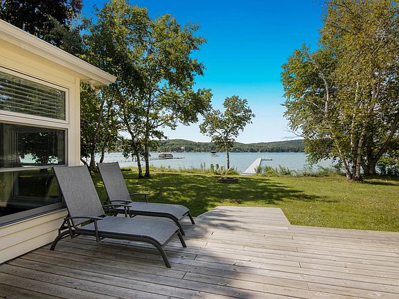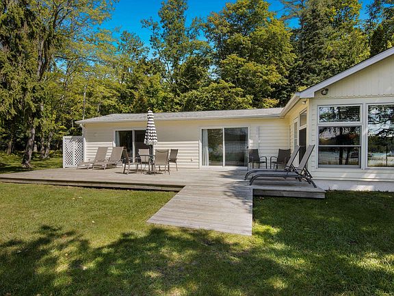 193 feet of private, sandy waterfront on Little Glen Lake sets the stage for this rare generational property. Nestled on 2.23 acres, an extraordinary amount of land for a waterfront parcel in this area. This home offers panoramic views of one of Northern Michigan’s most iconic lakes and is ready for its next chapter. The main house offers 1,540 sq ft of open-concept living, designed to maximize natural light and showcase water views from nearly every room. Two spacious bedrooms each feature large sliding doors, offering direct access to the deck and stunning lakefront vistas. Mini splits are strategically placed in both bedrooms and the family room for those extra hot summer days! For guests or extended family, the 775 sq ft bunkhouse includes a kitchenette, ¾ bathroom, and accommodations for six. There is plenty of space for storage and your toys as there is a 24x36 three-car garage, a separate 29x24 workshop, and even an exterior bathroom with a shower, perfect for rinsing off after a day in the lake. All furniture and items on the property will convey with the sale, including the dock and a wooden kayak launch raft that makes getting in and out of the water a breeze! Ideally located just five minutes from the village of Glen Arbor and with easy access to the Sleeping Bear Dunes National Lakeshore, biking and hiking trails, and the region’s wineries, this property offers a rare blend of privacy, acreage, and convenience. Whether enjoyed as a legacy family retreat, vacation getaway, or investment opportunity, this is Northern Michigan lake living at its finest.