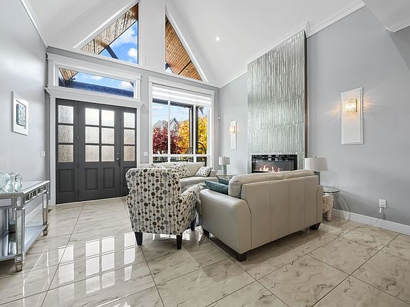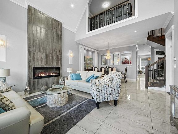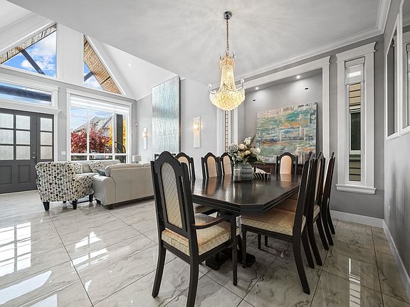 Welcome to this striking 2016-built home in the heart of Chimney Heights, blending modern luxury with timeless design. The grand vaulted entry opens to elegant living and dining areas with soaring ceilings and designer lighting. A chef-inspired kitchen features dual islands, premium appliances, and seamless flow into the family room — perfect for entertaining. Enjoy upgrades throughout, including epoxy garage flooring, turf backyard, and A/C comfort year-round. The lower level offers a 2-bedroom suite plus a bachelor suite, ideal for income or extended family. Steps to schools, parks, and easy Highway 10 & 152 access — this one defines refined Surrey living.