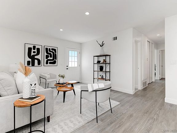 Beautifully upgraded single-family residence. Spacious, great-room style floor plan w/ large open kitchen featuring S/S appliances, quartz countertops, subway tile backsplash & newer cabinetry throughout. Brilliant LVP flooring & newer carpeting, newer windows & doors. Efficiently designed floor plan w/ excellent flow. Slider from the dining room area leads to the expansive covered patio for entertainment & relaxing in a beautifully upgraded, landscaped, private backyard. Home features a newer HVAC system, 12 solar panels (owned), Separate garage, paver-adorned driveway & large shed behind garage for additional convenience & storage. Make this house your new home, today! House has been recently landscaped and features artificial turf, Citrus and apple trees in a large, spacious, private backyard. Home has been recently painted, new gutters installed, termite work performed and clearance on hand. Located in the heart of Allied Gardens, Del Cerro Adjacent...this home offers the perfect balance of suburban charm and city convenience. Enjoy tree-lined streets, strong community vibes, and easy access to parks, shopping, SDSU, and major freeways. Just minutes from Mission Valley, with top-rated schools and abundant recreation nearby—this is San Diego living with comfort and connection. See it today before its sold!