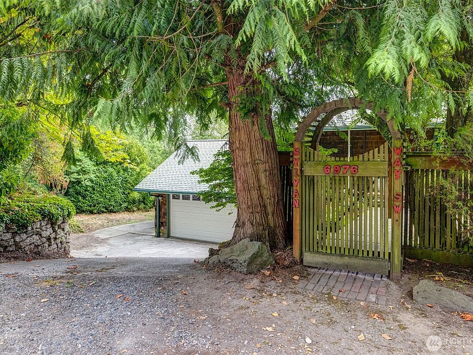 Tucked behind lush greenery, this 3 bedroom, 1.75 bath home brings the outdoors in with territorial views, skylights, & a solarium that connects the expansive new deck to the cozy living room with vaulted ceilings and brick fireplace. The updated kitchen overlooks the private backyard. On the lower level, the non-conforming primary includes an en suite bath. Dark engineered wood floors and new carpet throughout. The oversized lot features a circular driveway for easy access to the 2-car garage. The new heat pump provides central heat and AC . Enjoy the new hot tub in your private back yard. This is one to see in person. The spaces are flexible and lovely. Conveniently close to the West Seattle Bridge and everything the neighborhood offers.