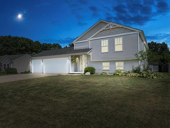 Offer Deadline is Monday 7-14-25 @ 2:00. This beautifully maintained raised ranch offers the perfect blend of indoor space & outdoor enjoyment. Multiple living areas & generously sized bedrooms, this home provides plenty of room for comfortable everyday living. The open-concept layout features a light-filled main level with vaulted ceilings & a seamless flow from the living room to the kitchen & dining area. Downstairs, enjoy additional finished spaces perfect for a second family room, home office, or playroom. Step outside & unwind in your professionally landscaped yard complete with a deck, patio, sand box, heated saltwater pool & hot tub. Three stall garage & shed add extra storage. All this at a great price in a sought-after school district.