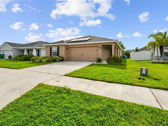 Looking for a newer community with great amenities? This 4-bedroom, 2-bath home built in 2021 offers the perfect blend of comfort, convenience, and style. The open-concept floor plan boasts a modern kitchen, dining area, and living room that flow seamlessly together—ideal for both everyday living and entertaining. The private primary suite provides a peaceful retreat, while three additional bedrooms offer flexibility for family, guests, or a home office. Step outside through the dining room sliders to a mostly fenced backyard, perfect for gatherings or quiet relaxation. Community amenities include a pool, playground, and dog park, giving you and your family plenty of ways to enjoy the Florida lifestyle. This home also features solar panels—buyers may assume the payment schedule with approval, making this home both energy-efficient and cost-conscious. Conveniently located near the SR54 corridor, you’ll enjoy quick access to shopping, dining, and business hubs, all while being surrounded by scenic countryside.