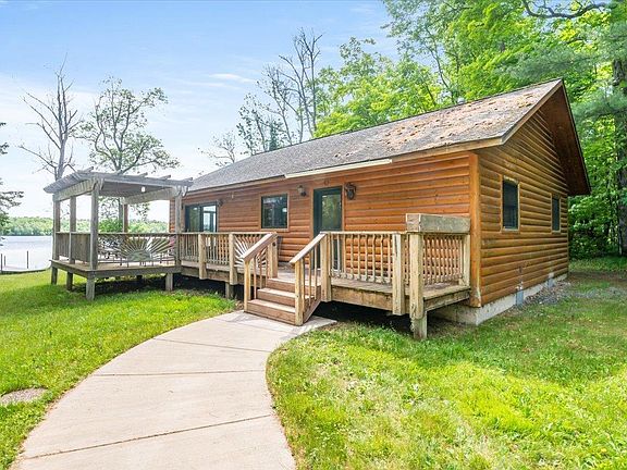Hubba Hubba! You will love this log sided home on the coveted Lake Nebagamon. Capture this beautiful 2 bedroom, 1 bath, 1 level home on one of the best lakes in the area. This home features so many things for the discerning clients, such as one level living. You could live here until the day you die! There are no stairs inside this home. The layout is fantastic. It has an open feel yet offers privacy. The kitchen, dining and living room offer lake views, vaulted ceilings, large windows and best of all you get to enjoy it with everyone! Imagine yourself surrounded by family or friends. The kitchen features wood cabinets,, a huge island with a built in cook top, stainless steel fridge, white wall oven, hardwood flooring and laminate countertops and a cast iron sink. The dining room has hardwood flooring, large picture windows with an arch and a patio door to the 15'6x13'6 deck. The primary bedroom is large and has a huge arch shaped picture window overlooking the lake. the second bedroom is even bigger and has a nice closet too. The bathroom has a country feel with a clawfoot tub, with vinyl flooring, recessed lights a pedistal sink. and 9 panel doors with glass. There is an amazing utility room that hold the gas boiler, 4o gallon water heater, washing machine and dryer, and a refrigerator. Outside you will find a huge deck overlooking the lake and yard. There is a huge, 28x32 garage with a 18x14 heated and insulated bar/shop/room that could be so many different things. There is even a boat house that could be additional space that you may need. The exterior is wrapped in 1/2 log siding and looks just like a cabin should! Lake Nebagamon is one of the most highly sought after lakes in the area and boasts fantastic fishing, dining, entertainment and the Village of Lake Nebagamon offer a unique environment to reside in Northern Wisconsin. Updates include a new refrigerator 2023, furnace was serviced in 2025, roof was installed in 2000, 2 new sump pumps were installed in 2024. Hubba hubba, you will love this home and this home will love you back!