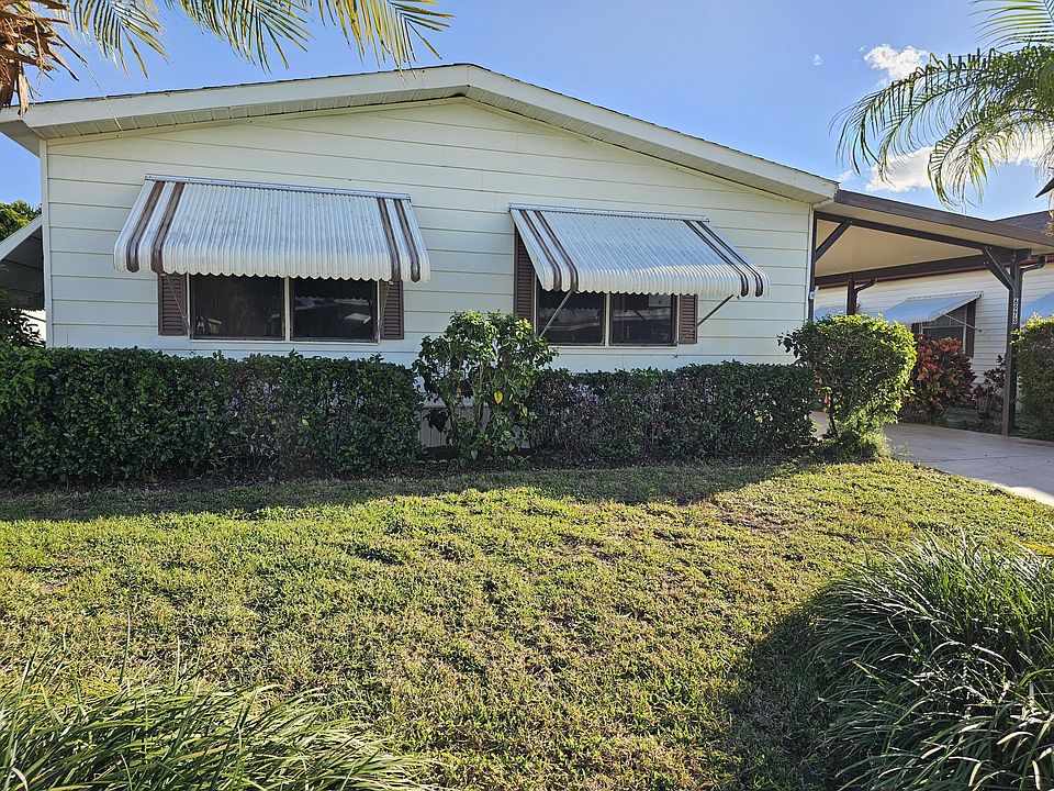 Own the land! This move-in ready 2-bedroom, 2 bath home is located in the highly desirable Cambridge community and welcomes pets, plus RVs and boats are allowed. Features include tile and vinyl plank flooring with carpet in the guest bedroom, a large interior laundry room with abundant storage, and a primary suite with a walk-in shower. The guest bedroom includes a walk-in closet, and there is also an exterior shed/workshop for additional storage or hobbies. Enjoy extra living space in the spacious Florida room, perfect for relaxation or entertaining. HOA includes cable, community pool, and maintained common areas. Located just minutes from Hobe Sound Beach, shopping, dining, golf and parks. A great opportunity for affordable coastal living.