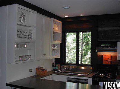 DESIGNED FOR THE PERFECT INTIMATE GETAWAY! NEW CABIN INCORPERATING RECLAIMED WORMEY CHESTNUT LOGS ONTO THIS SIMPLE YET SOPHISIICATED MOUNTAIN ESCAPE. THE MAIN LEVEL HAS A VAULTED GREAT ROOM WITH FIREPLACE, A SLEAK MODERN KITCHEN WITH GRANITE COUNTERTOPS, MASTER BEDROOM/SUNROOM AND A FULL BATH WITH EXPOSED LOGS. A SPIRAL STAIRCASE LEADS TO A SECOND LEVEL LOFT BEDROOM, HALF BATH AND A BALCONY. THERE IS ALSO A COVERED PORCH THROUGH FRENCH DOORS IN THE GREATROOM THAT OPENS ONTO A PATIO WITH AS OUTDOOR FIREPLACE. ALSO, THERE IS A FULL BASEMENT WITH A GARAGE. THE PROPERTY HAS INDIGENOUS WESTERN NORTH CAROLINA VEGATATION AS WELL AS SEVERAL ROCK OUTCROPINGS. DESIGNER TOUCHES THROUGHOUT. LOFT SQUARE FOOTAGE COUNTED IN TOTAL. DOUBLE- SIDED FIREPLACE TO BE INSTALLED. OWNER IS A REAL ESTATE BROKER. MOUNTAIN ELECTRIC PROVIDES ELECTRICTY.