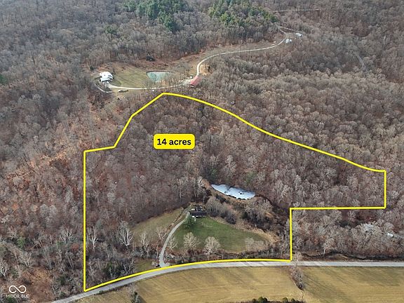 Welcome to your wooded get away! Situated in Brown County on 14 acres with mature trees, pond, and creek! This charming ranch home features 3 bedrooms, 2 full bathrooms, and over 1,500 sqft. Stepping inside you are greeted by the living room overlooking the sprawling front yard and creek. Continue through to the kitchen and dining area with updated flooring, opening up into the great room with cathedral ceilings, large windows to let in all the light, as well as views of the woods behind the home. Down the hallway you will find the laundry room, full bathroom, and 3 spacious bedrooms. Looking to spend time in nature? This is the place for you. Enjoy time hiking in the woods, fishing in the pond, or just enjoying the peace and quiet! The home also has the potential to be a short-term rental with its close proximity to Nashville, Brown County State Park, and Columbus. Don't miss the chance to make this beautiful property yours!