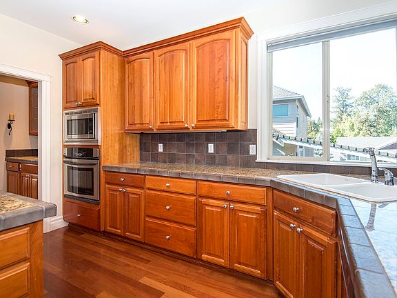 Large Kitchen w Butlers Pantry. Hoop on driveway, low maintenance back yard has UPR & LWR decks w/ lrg turf pad, never have to water or mow! Wired for sound, central air with dual zones for upper and lower LVL, Plumbed for Central Vac. Hardwood floors on main, upstairs Laundry with built-ins. Extra storage off 3rd bedroom and 4th bedroom/Bonus room. Sprinkler system in front yard. lower den/office w/adj bath could be guest room.