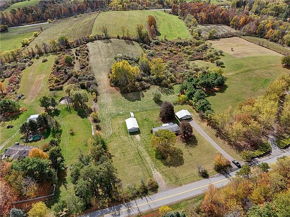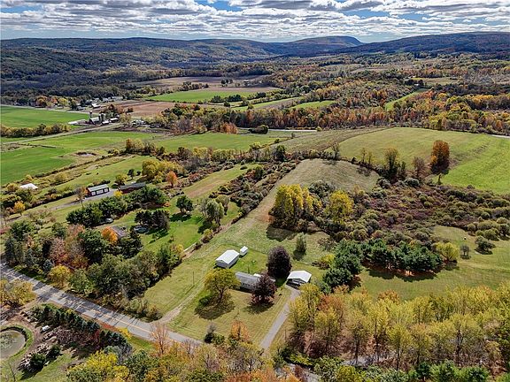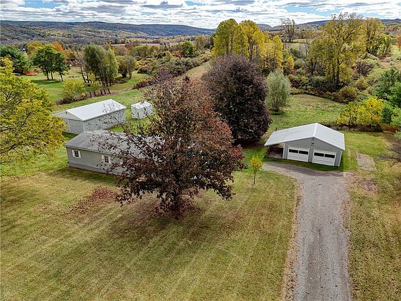 WHERE DO I BEGIN? IS IT THE DWELLING, THE 24x38 POLE BARN(S) FOR YOUR HORSES, THE DETACHED HEATED GARAGES OR THE 4.9 ACRES OF MAGNIFICENT, PRIVATE, COUNTRY LIVING? LET'S START WITH THE 3 BEDROOM/ 1.5 BATH MANUFACTURED HOME ON A SLAB. YOU ARE GREETED WITH A 21X23' OPEN CONCEPT GREAT ROOM/DINING/KITCHEN FLOODED WITH NATURAL LIGHT. THIS LARGE 483 SQ FT ROOM WILL SPARK THAT CREATIVE DECORATOR WITHIN YOU! A PRIVATE OFFICE SITS JUST OFF THE LIVING ROOM. THERE IS EVEN ANOTHER ROOM WITH A SLIDER TO THE DECK THAT YOU CAN DEDICATE AS YOU WISH. NEW LAMINATE FLOORING HAS BEEN INSTALLED THROUGHOUT THE HOME. NOW LET'S TALK ABOUT THESE 3 OUT-BUILDINGS... THE POLE BARN HAS RAILS FOR 3 STALLS (CURRENTLY LEANING AGAINST THE WALL) AND HAS ELECTRICITY, WATER AND LOTS OF STORAGE. NEXT, YOUR HORSES WILL LOVE THE 'RUN-IN SHED' TO FLEE THE ELEMENTS. THE DETACHED 2-BAY GARAGE OFFERS ELECTRIC, AND A HEATED WORK/STORAGE SPACE. THEN ENJOY THE ALMOST 5 ACRES THAT HIKES YOU BACK 812' FROM THE ROAD WHERE THE VIEW OF BRISTOL HILLS IS JUST AMAZING. BOTH FIELDS AND WOODS MAKE UP THE SERENITY AND PRIVACY YOU CRAVE.