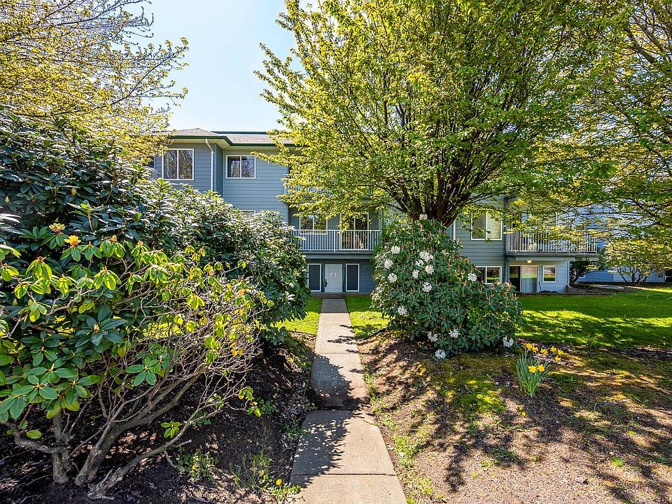 Look at this 1-bedroom, 1-bath ground-floor condo in a desirable, central Comox location—just across from Quality Foods and a short stroll to shopping, North Island College, the aquatic centre, hospital, walking trails, and more. This well-managed, secure-entry building is wheelchair accessible, allows rentals, and welcomes one small pet per unit. Inside, you'll find in-suite laundry, a shaded private patio, and practical updates from 2019 including laminate flooring, appliances, water heater, bathroom vanity, lighting, and more. Ideal for first-time buyers, retirees, or investors—this unit offers comfort, convenience, and excellent value in a fantastic location.