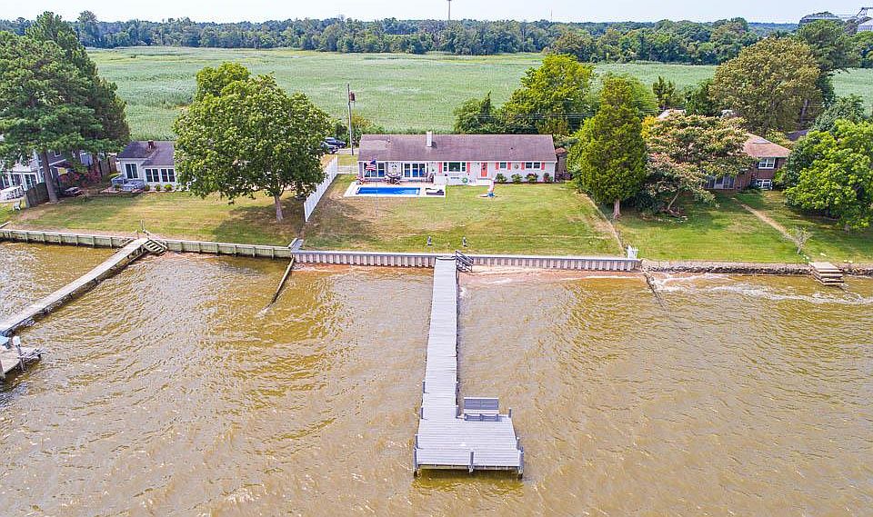 Renovated waterfront ranch located on the banks of the Rappahannock river with vinyl bulkhead IN-GROUND UV POOL and SAND BEACH! The layout in this house is great and showcases the river at its best! You have beautiful views of the river from your primary bedroom with massive walk in closet and huge private bathroom with all the upgrades including separate vanities, and heavy glass tile shower! The kitchen is completed with black stainless appliances, new LVT flooring, granite counter-tops, and is open to the dining room! The family room has beautiful refinished hardwood floors, brick fireplace, and stunning views overlooking the pool and the river! There are two more large bedroom located on the other end of the house that share the hall bath. Don't forget about the wet bar with private half bath on the way out to the poo/river for all the fun in the sun. There is a new UV pool that comes with an auto pool cover, sun deck, seating area, and paver patio. Also included is a new vinyl bulkhead sea wall with two jetties to protect your SAND BEACH. There is plenty of room for visitors to tie up to the pier! Flood insurance not required!