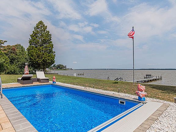 - Exterior Features: Pier/Dock, River/Creek Front, Paved Driveway, Pool, Patio, Sand Beach