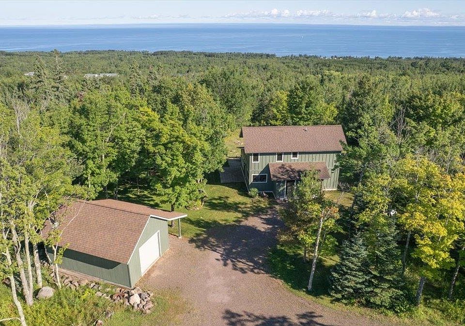 - Description: Stunning Lake Superior Views! Heated tile floors. Kozy Heat fireplace. Vaulted ceiling. Open concept to dining area.