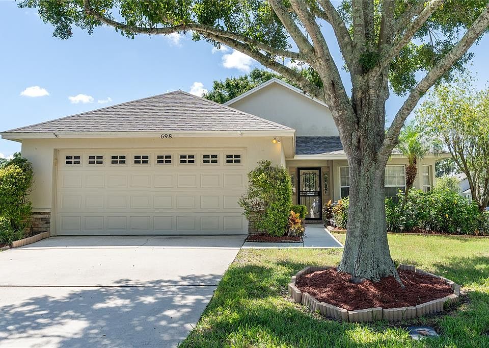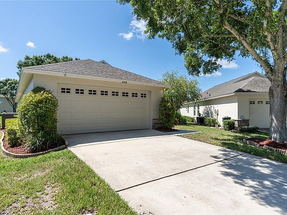 Welcome to 698 Lake Clark Place, a beautifully maintained 3 bedroom, 2 bathroom home located in the gated community of Christina Hammock. This residence offers a desirable split floor plan with impressive 12-foot ceilings in the living room and an abundance of natural light throughout. Recent updates provide peace of mind, including a new roof (2021), new air conditioning unit (2021), new stove and microwave (2022), new water heater (2022), new garbage disposal (2022), exterior paint (2023), and brand-new gutters (2025). The spacious screened lanai overlooks a tranquil pond with wildlife, ensuring no rear neighbors and providing a private retreat right in your backyard. Nestled at the end of a quiet cul-de-sac, this property also features beautiful landscaping and excellent curb appeal. Enjoy the community tennis court, gym, pool, and clubhouse all within just a few minutes' walk from the home. Move-in ready and situated in one of Lakeland’s most sought-after communities, this home combines comfort, convenience, and Florida living at its best.