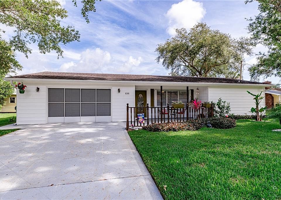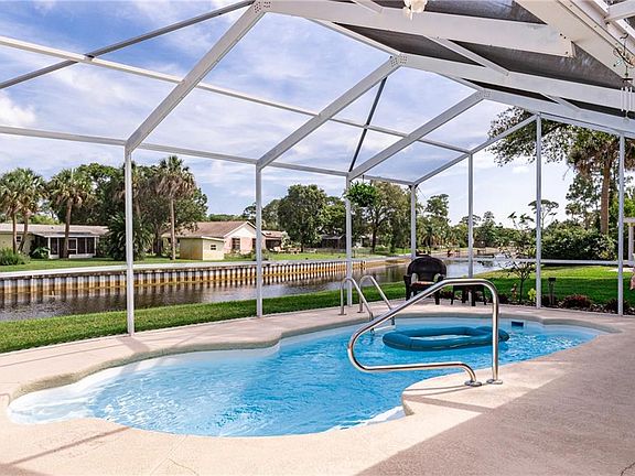 Waterfront Pool Home, wood-look tile flooring, wainscoting, crown molding, granite countertops, new appliances, 2017 a/c, new fuse box. Enclosed florida room w/2018 roof. Screened pool overlooking canal- So serene! Outside feat. new pool skimmer, generator hookup, drain field 2019, new sprinkler pump, accordion shutters, garage screen, stamped concrete drive, storage shed. (sizes approx)