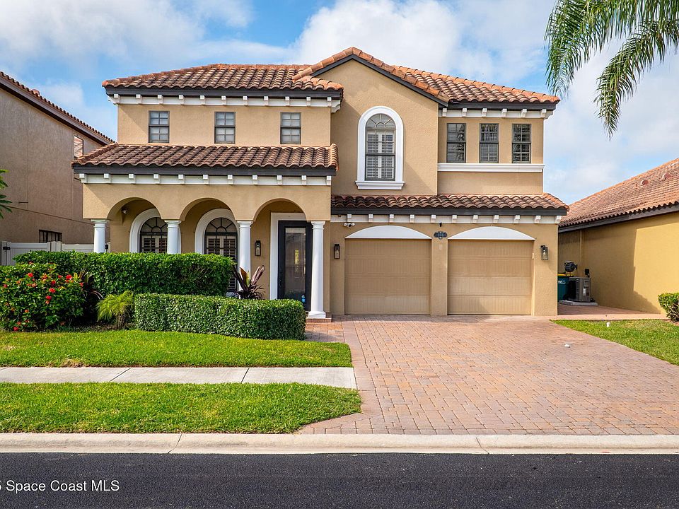 Welcome to Florida living at its finest! This stunning luxury home features 5 bedrooms, 3 full bathrooms, and 3,805 sq ft of beautifully designed living space. Enjoy multiple living areas, wine & cocktail bar, formal dining, & THEATRE ROOM with raised seating & a new $20K projection and sound system. IMPACT WINDOWS AND DOORS with plantation shutters, LVP, and tile flooring. The inviting family room with a gas FIREPLACE featuring stamped coral tile opens to a chef's kitchen with granite countertops and NEW stainless appliances. The spacious primary suite offers a private sitting room and his-and-hers WALK IN CLOSETS Additional upgrades include (2025) WHOLE HOME WATER FILTRATION SYSTEM, (2022) HVAC, & a tankless water heater. Step outside to your oversized covered patio w/ retractable awnings, roll-down shades, and a sparkling SALTWATER POOL with NEW (2025) pump, heater, & salt cell. Enjoy resort-style amenities—pool, clubhouse, gym—and top-rated schools just minutes from the beach!