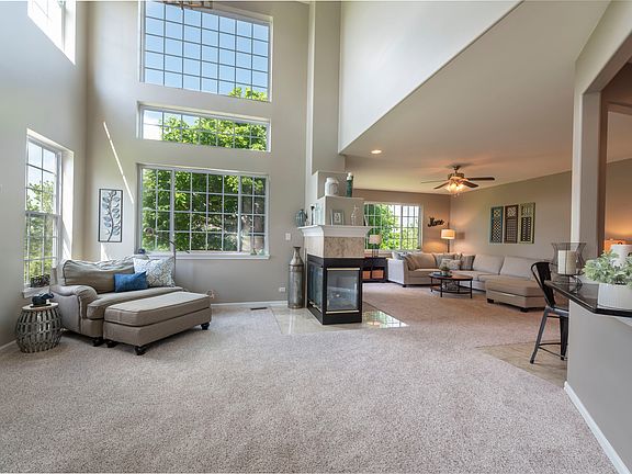 Welcome to your tranquil oasis tucked away in a cul-de-sac, with captivating pond views! This immaculate 1/2 duplex boasts an expansive layout featuring 3 bedrooms, a loft, and 2.5 baths. Step inside to discover the airy ambiance of vaulted ceilings, complemented by skylights that usher in natural light throughout the day. Unwind beside the warmth of a two-sided fireplace, seamlessly connecting the living room and dining area. Enjoy the scenic beauty from your deck or balcony, ideal for al fresco dining or morning coffee overlooking the water. Entertain in the well-appointed kitchen, complete with a breakfast bar, oven, microwave, and dishwasher. Retreat to the primary suite, offering a full bathroom with a separate shower for added convenience. Additional highlights include wood flooring, laundry on the main level, and a full unfinished basement, providing endless possibilities for customization. With a 2-car attached garage, ample storage space, and forced air heating and cooling system, this home combines comfort and functionality.