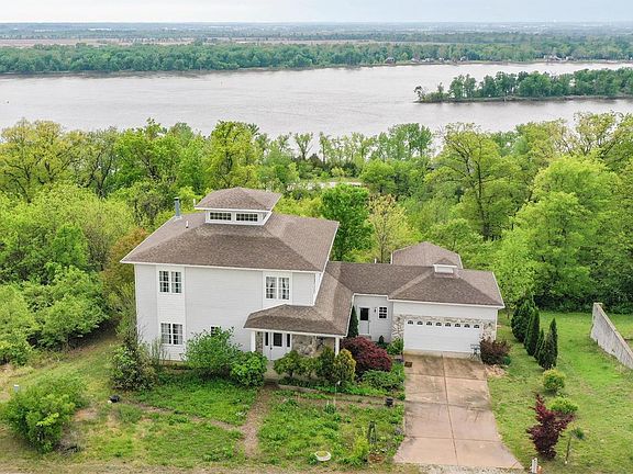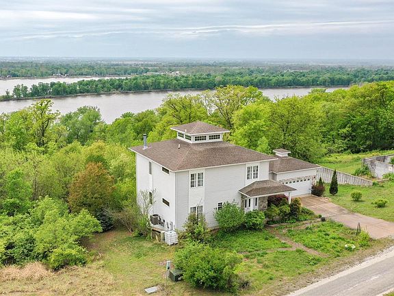 Welcome to Calhoun County! Sitting high above the Mississippi River, this unique 3 bed, 4 bath, 2.5 story home offers unparalleled RIVER VIEWS. Spacious master bedroom on the main floor, lots of natural lighting throughout this home, an open concept kitchen offers special feature appliances, lots of cabinets and counter space to cook for many forms of entertainment. Grilling on the upper deck overlooking the river, or enjoy peaceful reading in the screened in porch. Special features consist of cherry oak hardwood floors, wood burning fireplace, main floor laundry, the upper level loft and more! Lower level offers plenty of space as a second family room, storage room and full bathroom. This home can be offered furnished if desired! Oversized two car garage with lots of storage and conveniently enters off of the kitchen. Back yard backs up to common ground. Community club membership includes an in-ground pool, dining/bar and workout facilities.