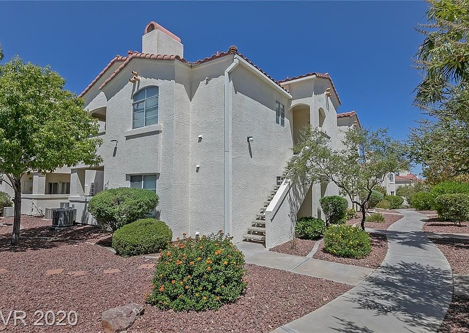 Spacious 2 bedroom/2 bath condo in a gated, well maintained Henderson community. Very desirable floor plan with a great flow. Kitchen comes with granite counters, beautiful tile floors, stainless steel appliances, and a gas stove. Kitchen opens to a lovely dining area. The great room has a gas fire place and access to the balcony. Master bedroom suite with a large walk-in closet, ceiling fan, and a sliding door to the balcony. Both bedrooms have large walk-in closets. Brand new AC unit!!
