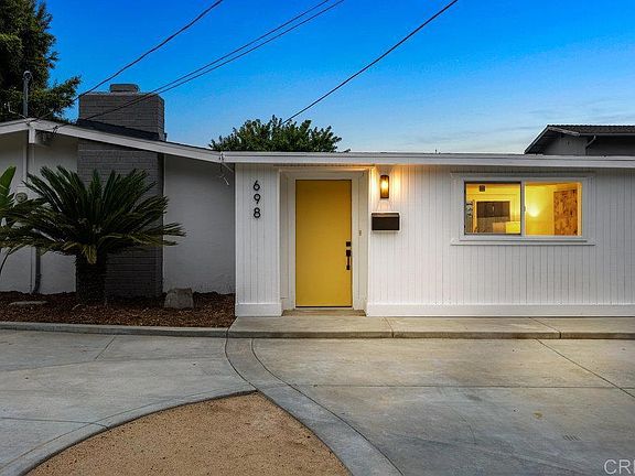 **Seller will entertain offers between $799,000 & $819,000 **Resting at the foothills of Mt Helix, on a subtle tree lined street is a single level, modern style retreat with all the comforts of home. This mid century home offers vaulted plank wood ceilings, multiple large windows, a refreshing pool and open floor plan with the fully reimagined kitchen and the original garage converted to a spacious formal living room creates an abundance of space for everyday living and entertaining. Durable oak-styled LVP wraps through all of the living areas and the chic kitchen offers an island with range and freestanding hood, quartz counter space and fresh cabinetry encompass the stainless steel appliance package. The bathrooms have each been renovated to include custom tile designs, newer vanities and a walk in glass enclosed shower in the primary bedroom. The outdoor space offers an inground pool and a grass area on the side of the home. Included in the comprehensive remodel was a new roof, pool replastering & tile & pool plumbing replacement. 698 Skyview is fresh, dressed and ready to impress so do not miss your opportunity to call this home. CALHFA "DREAM FOR ALL WELCOME"