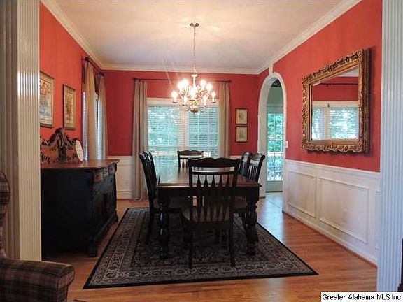 Great location, beautiful views! 3 bedrooms, 2.5 baths, master on main, and 2 bedrooms, full bath, and bonus office/playroom upstairs. Open floor plan has 16' ceilings in the den (w/gas logs in wbfp) and 20' ceilings in the eat-in kitchen, featuring stainless steel appliances and Corian counter tops w/molded sink. Beautiful oak hardwood floors throughout the public areas. The kitchen opens to a 14'x24' oversized deck with awesome views every day! The unfinished full basement is stubbed for a third full bath and a spacious rec room or even a 4th bedroom. The well-manicured lawn, on almost a half-acre lot, is irrigated. This well-maintained one-owner home was built with extra insulation packed into interior & exterior walls, has new energy-efficient double pane windows (2011), a newer roof, 2 York HVAC systems new in 2010 with 2+/- years left on compressor warranties, & new paint inside and out in 2013-2014. 5 minutes to shopping, 10 minutes to Galleria. Hoover schools.